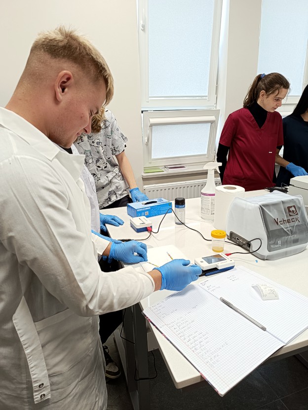W dniach 29 i 30 września oraz 1 października uczniowie trzech grup z klas IV technikum weterynarii, w ramach zajęć z przedmiotu „Analityka weterynaryjna”, zapoznawali się i wykonywali badanie właściwości fizykochemicznych moczu.