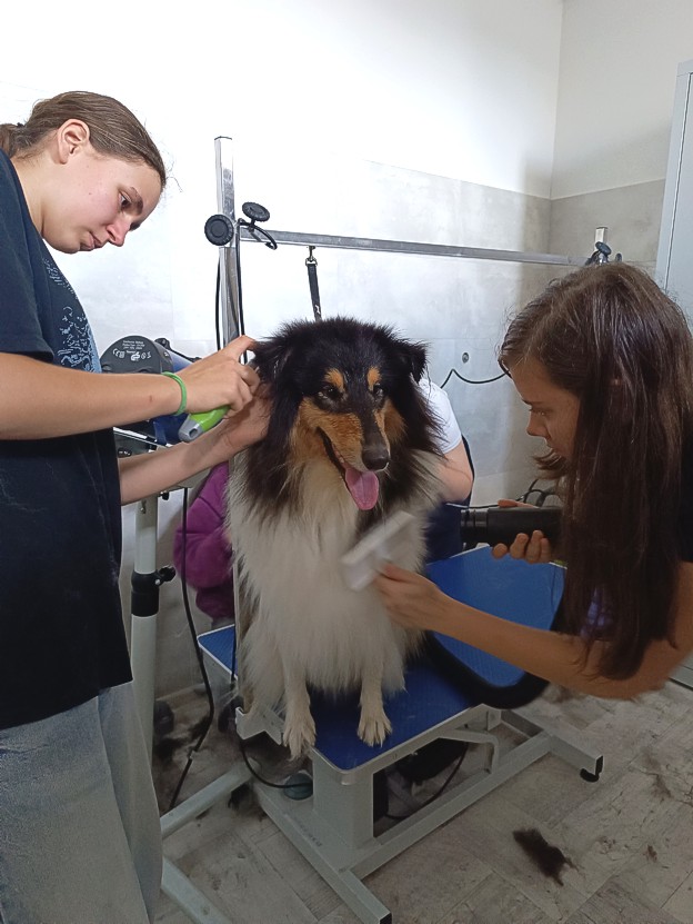 W dniu 19 września uczniowie z klasy II technikum weterynarii, w ramach zajęć z przedmiotu „Prowadzenie produkcji zwierzęcej”, zapoznawali się i wykonywali zabiegi pielęgnacyjne psów.