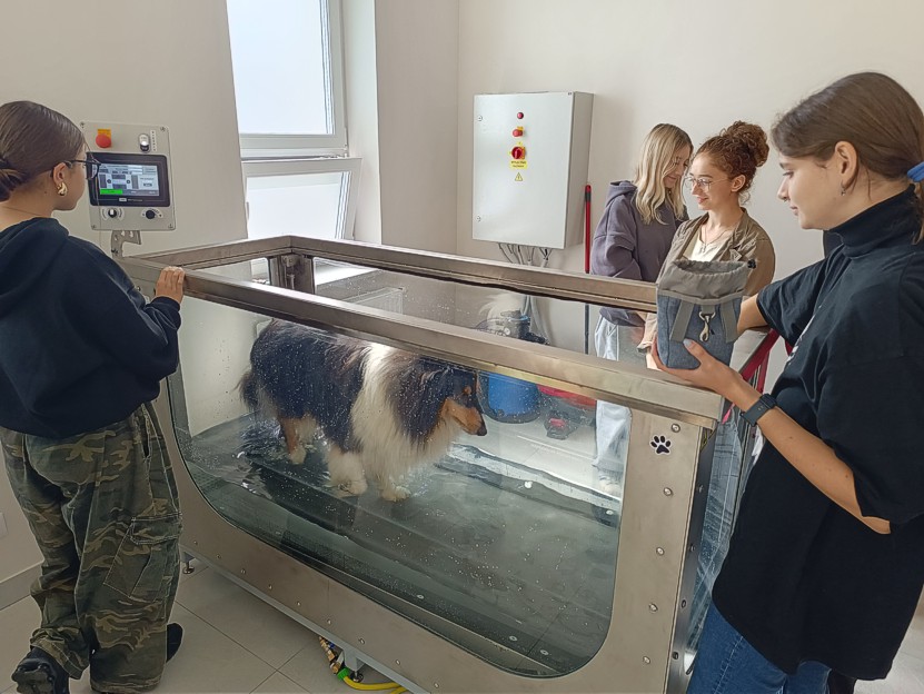 W dniu 18 września dwie grupy z klas IV technikum weterynarii, w ramach przedmiotu „Zabiegi weterynaryjne”, zapoznawały się z funkcjonowaniem bieżni wodnej.