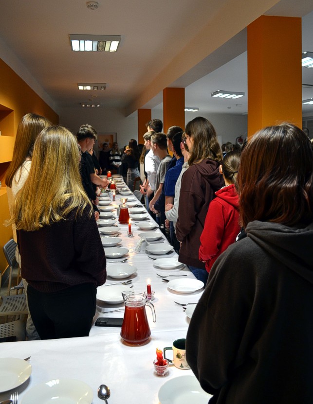 W dniu 18.12.2025 r. w naszym internacie odbyła się tradycyjna wieczerza wigilijna. Był to wyjątkowy czas pełen radości, wzruszeń i wspólnego świętowania. Spotkanie rozpoczęliśmy od życzeń i podzielenia się opłatkiem. Następnie zasiedliśmy do uroczystej kolacji, a płynące z głośnika kolędy i pastorałki wprowadziły nas w świąteczny klimat.