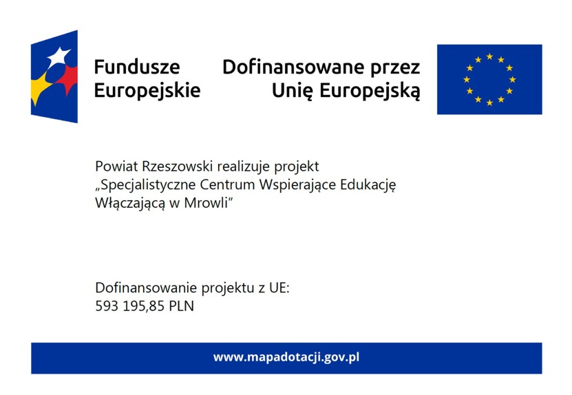 Powiat rzeszowski otrzymał grant na realizację przedsięwzięcia pn. „Specjalistyczne Centrum Wspierające Edukację Włączającą w Mrowli”, realizowanego w ramach Programu Fundusze Europejskie dla Rozwoju Społecznego 2021-2027, Priorytetu: FERS.01 Umiejętności, Działania: FERS.01.06 Edukacja włączająca.