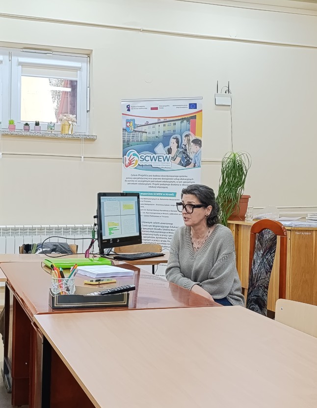 W dniu 09.04.2026r. nauczyciele ZSTW w Trzcianie wzięli udział w szkoleniu "Ocena funkcjonowania ucznia w placówce edukacyjnej. Narzędzia diagnostyczne”, które przeprowadziła dr Małgorzata Zaborniak- Sobczak - wicedyrektor Poradni PP nr 1 w Rzeszowie, wieloletni pracownik Uniwersytetu Rzeszowskiego oraz ekspert SCWEW.