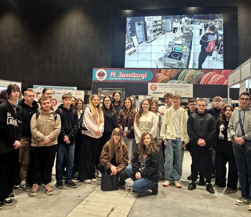 W dniu 24.03.2026 r. uczniowie kształcący się w zawodzie technik żywienia i usług gastronomicznych wzięli udział w wyjeździe studyjnym na targi SweetTARGi w Katowicach.